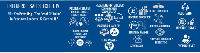 Strategic Enterprise Technology Sales Acumen. Multi-domain acquired skillsets by providing tools and services for networks, applications, and end-point devices. Multi-Domain Toolset Solutions that manage, monitor, test, measure, analyze, report, comply, encrypt, access, and secure. Sales Intellectual Acumen: high “figure it out” quotient with “hustle”. Nimble mind to change with market dynamics, emerging technology, unpack business models, prospects economics, digital transformations, and competitive edge instinct. Fortune 1000 Enterprise Account sales to C-level decision makers in Central US & TOLA Region. In Corporate Cultures at various stages, models, penetration and exceeded leadership goals. A-Team precise “high tempo” of execution, “SME mindset” as the product evolves, "thrill" to hunt, and sales acumen resulted in sustained career success.